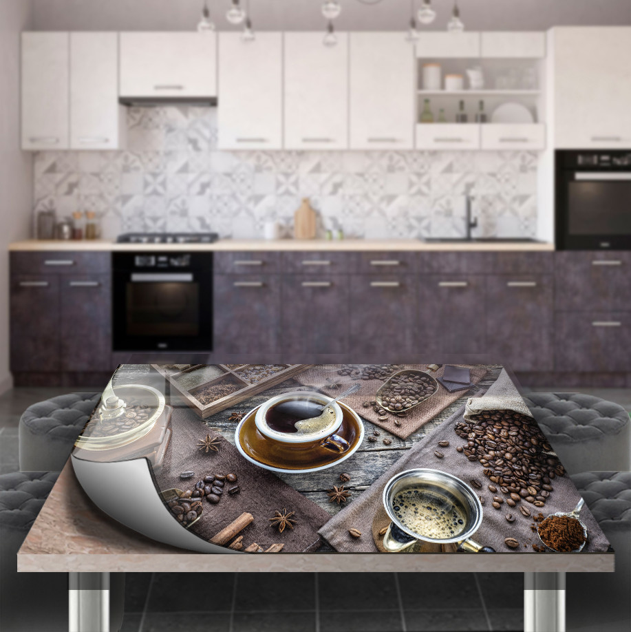 Покриття для столу, м'яке скло з фотодруком, Кава 60 х 100 см (1,2 мм)