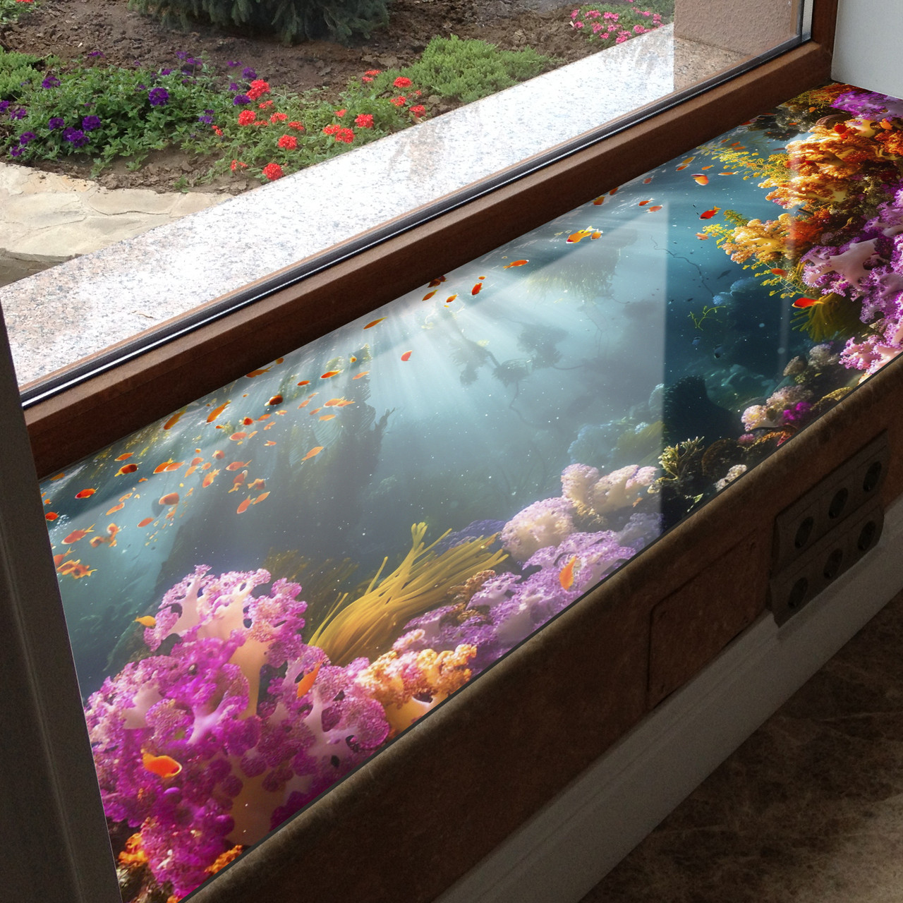 Отримайте цю позицію безкоштовно при покупці «Покриття для підвіконня, м'яке скло з фотодруком Підводний світ під променями сонця, 35 х 100 см, ПО-tx418»