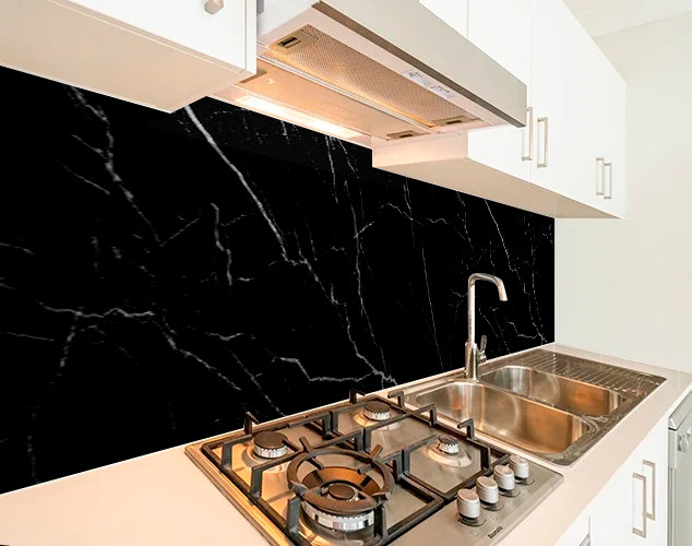 Панель на кухонний фартух жорстка чорний мармур, з двостороннім скотчем 62 х 205 см, 1,2 мм