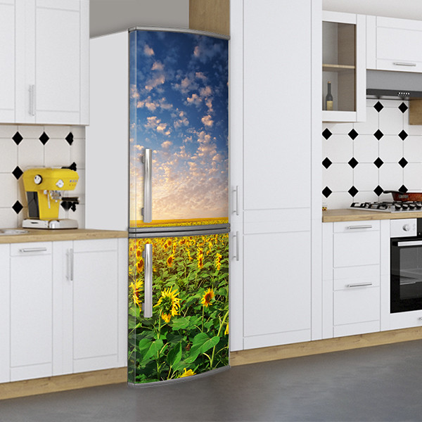 Вінілова наклейка на холодильник, поле з соняшниками, 180х60 см - Лицьова (В), з ламінуванням
